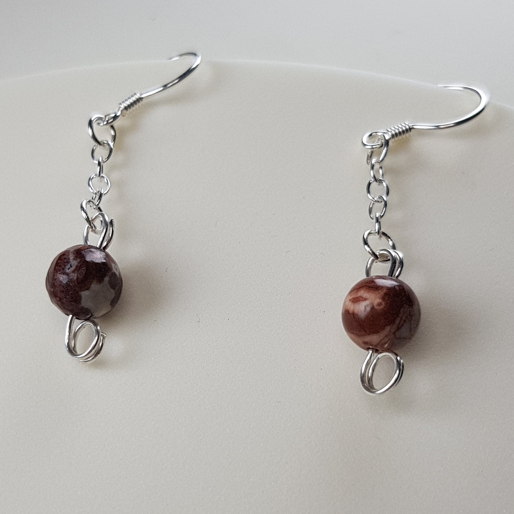Boucles d'oreilles agate crazy argent 925 composées d'une perle agate crazy 8mm,  2 crochets oreilles argent 925,