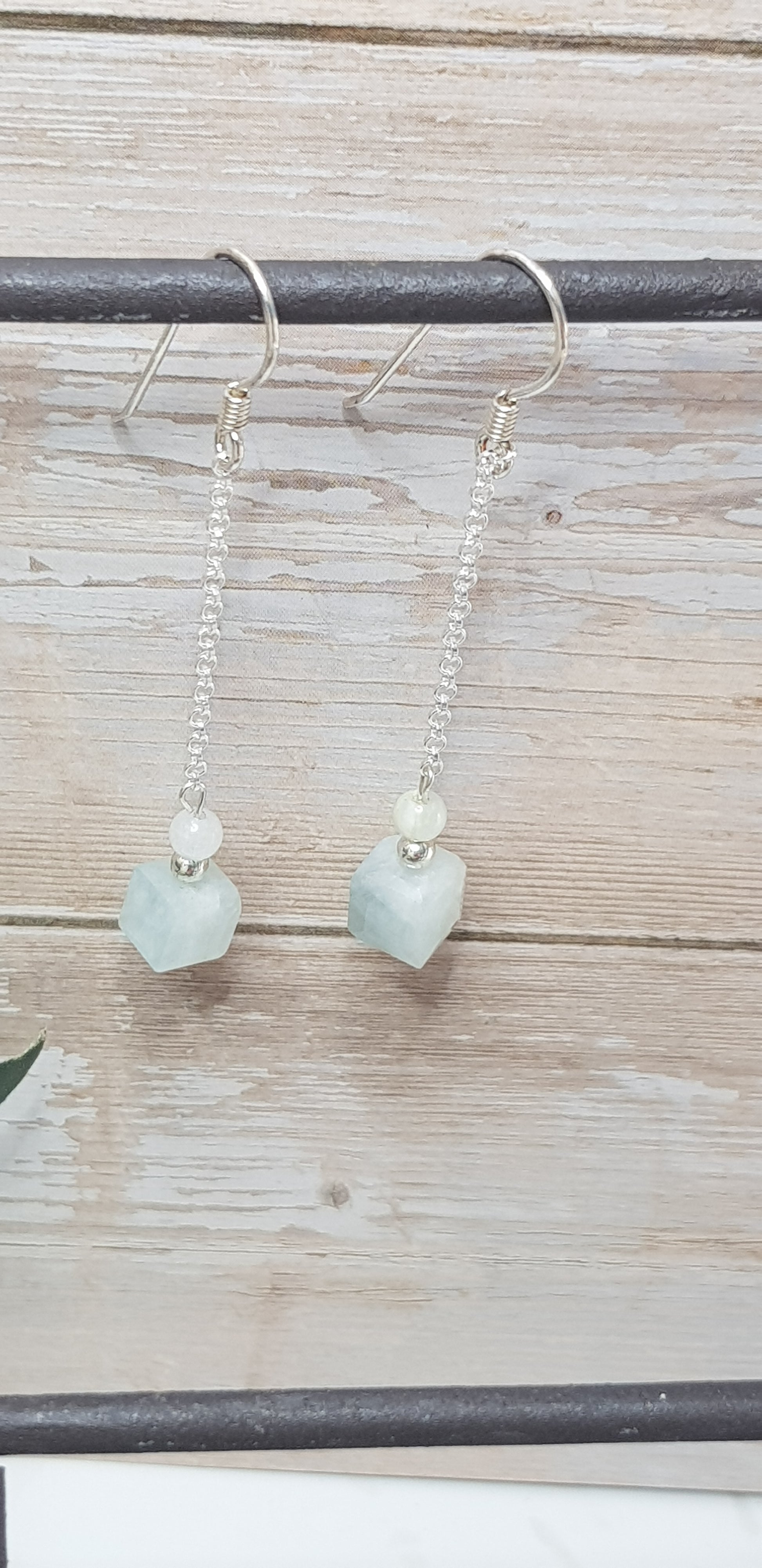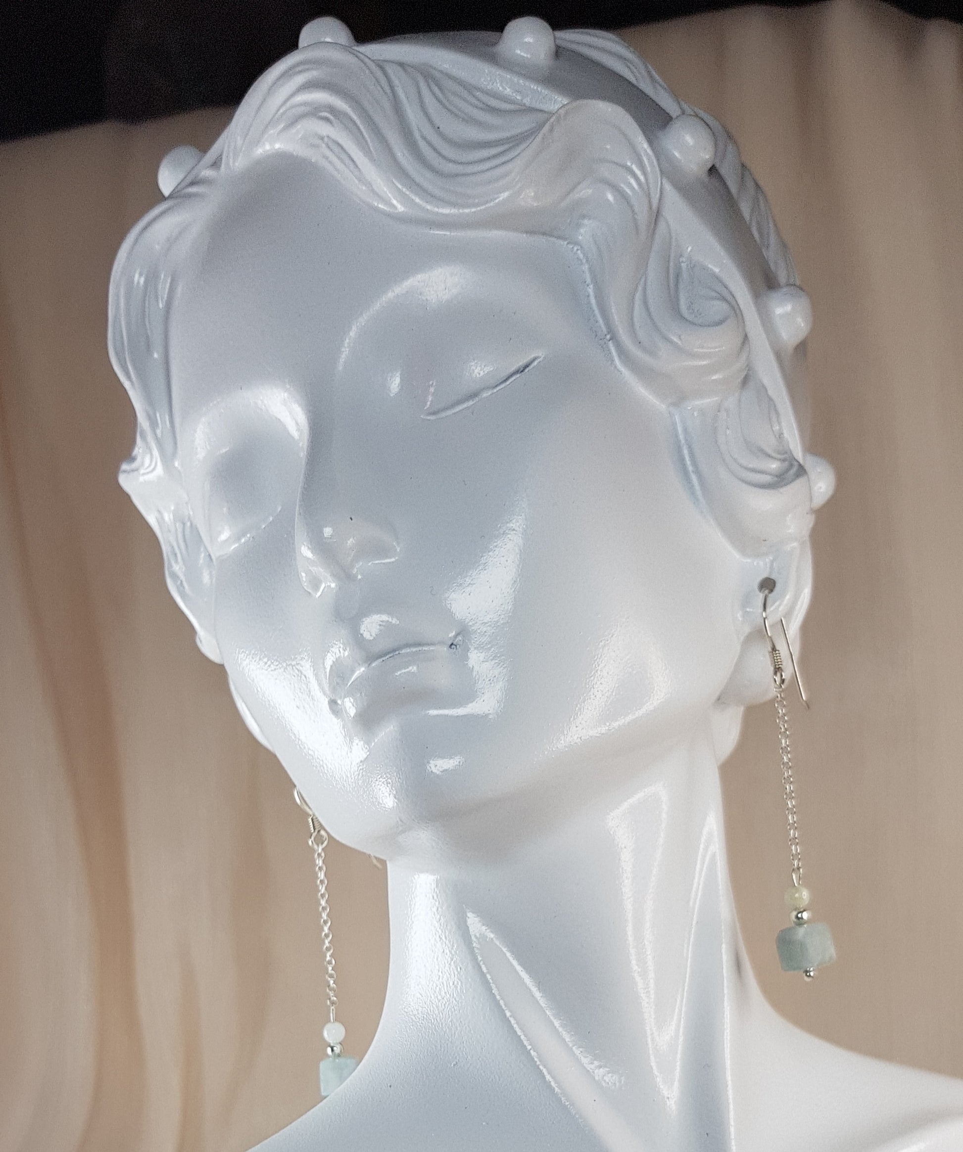Boucles d'oreilles aigue marine argent 925 composées d'une perle lapis lazuli 8mm, 1 perle de lapis lazuli 4 mm, 2 crochets oreilles argent 925, 2 perles argent 925