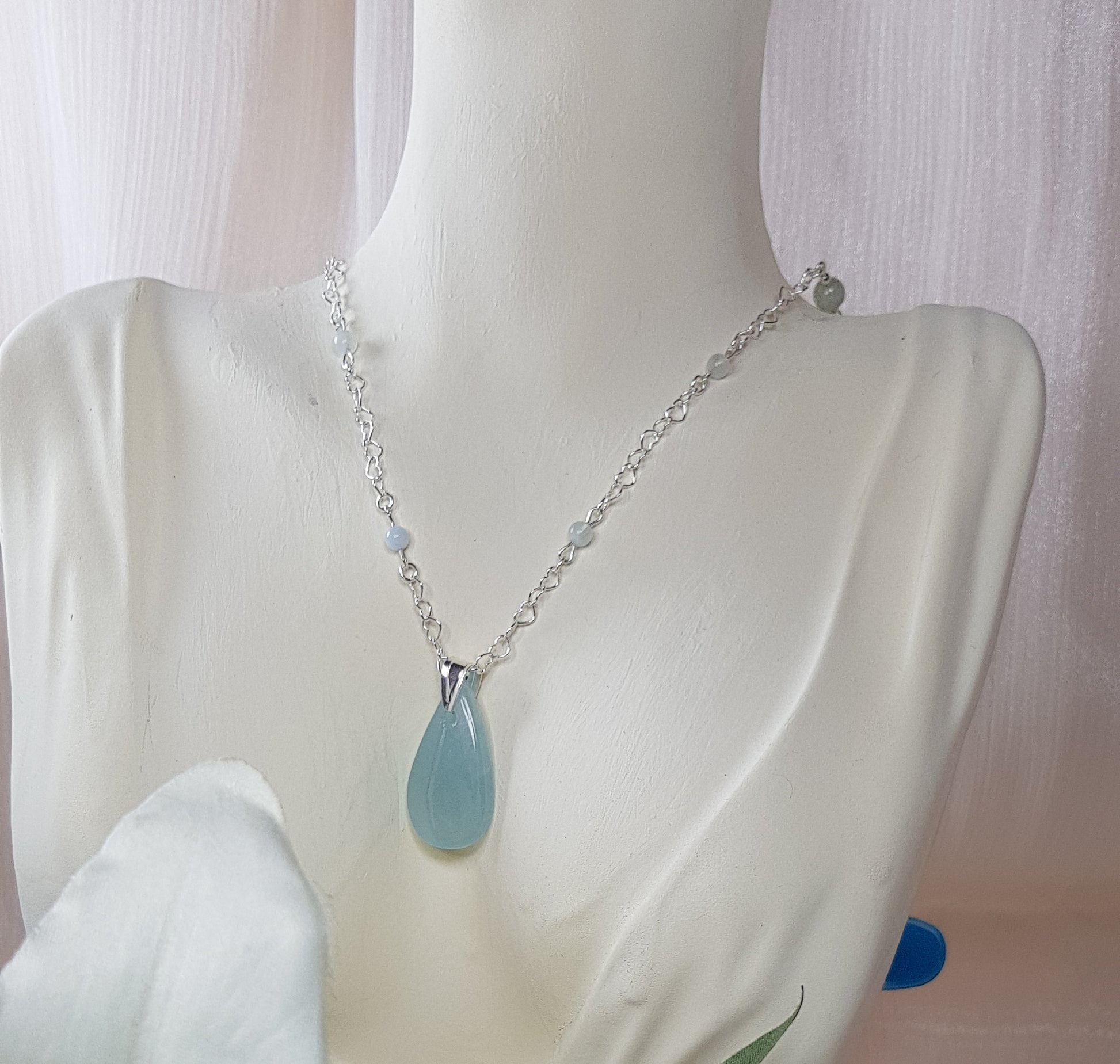 1 pierre gouttelette aigue marine + pierre aigue marine + chaine argent 925