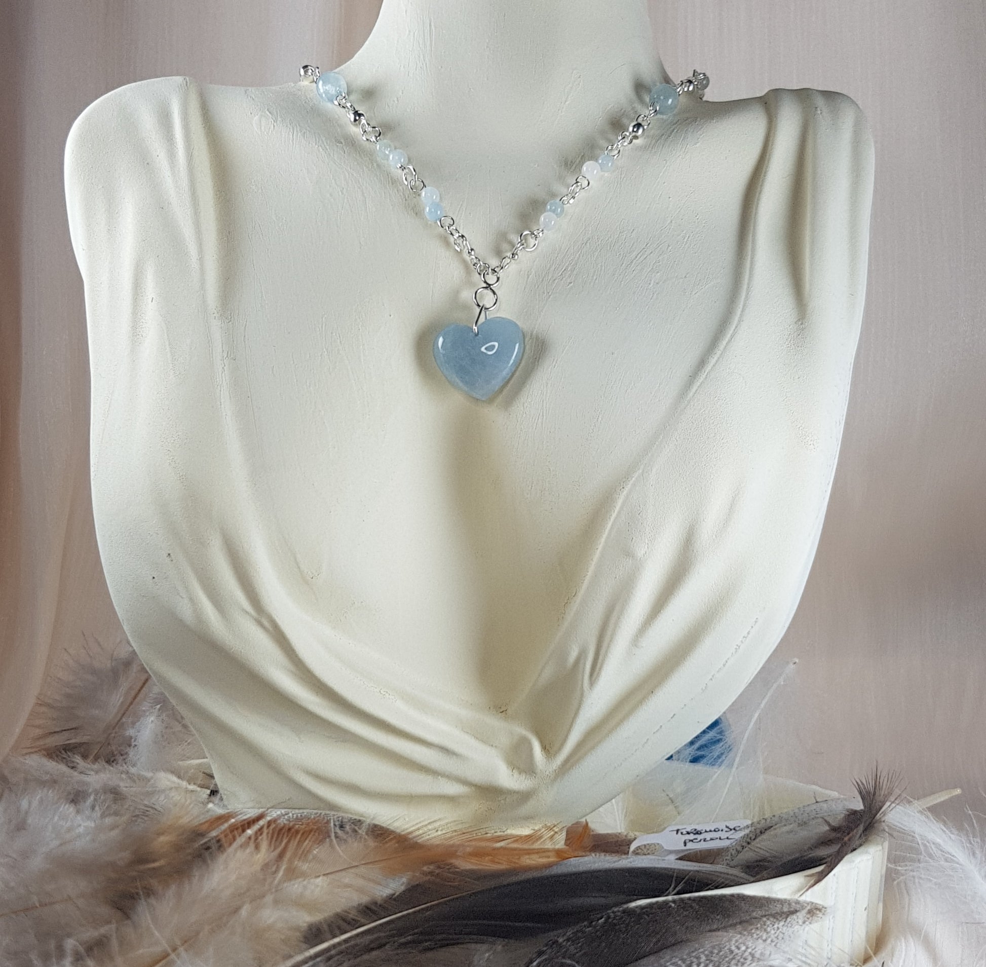 aigue marine coeur argent 925