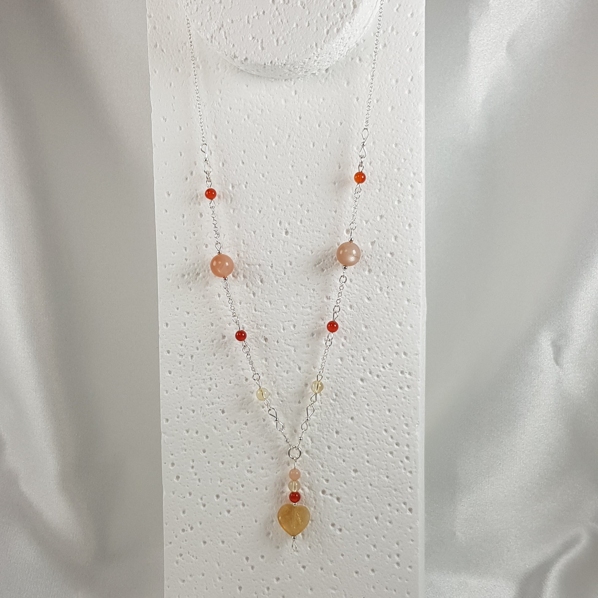 composé de pierres citrine, pierre de soleil, cornaline + perles argent 925 + chaine argent 925