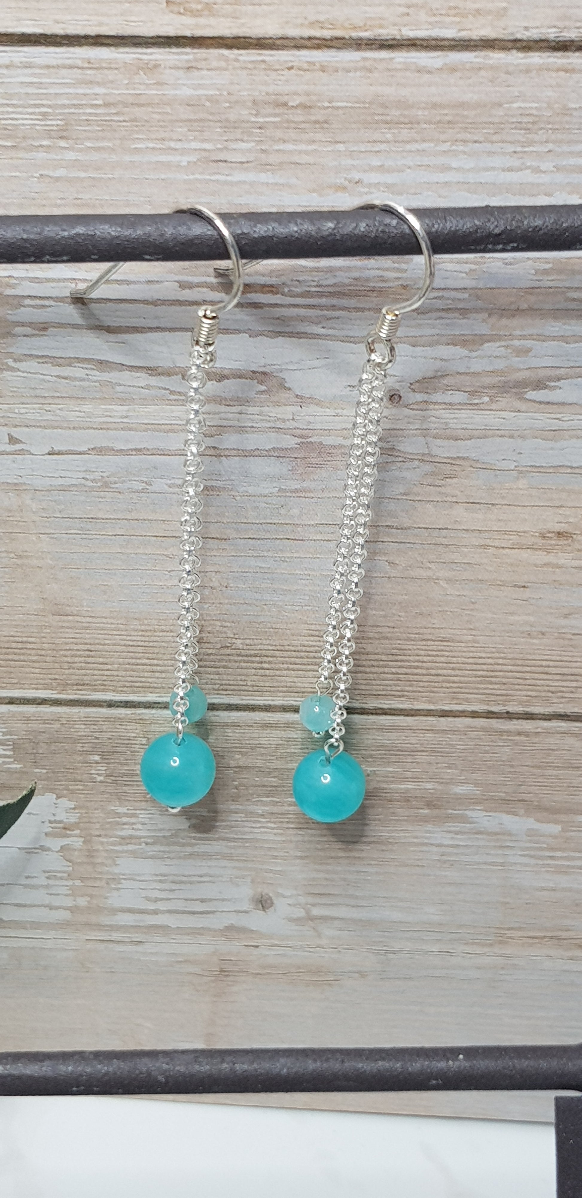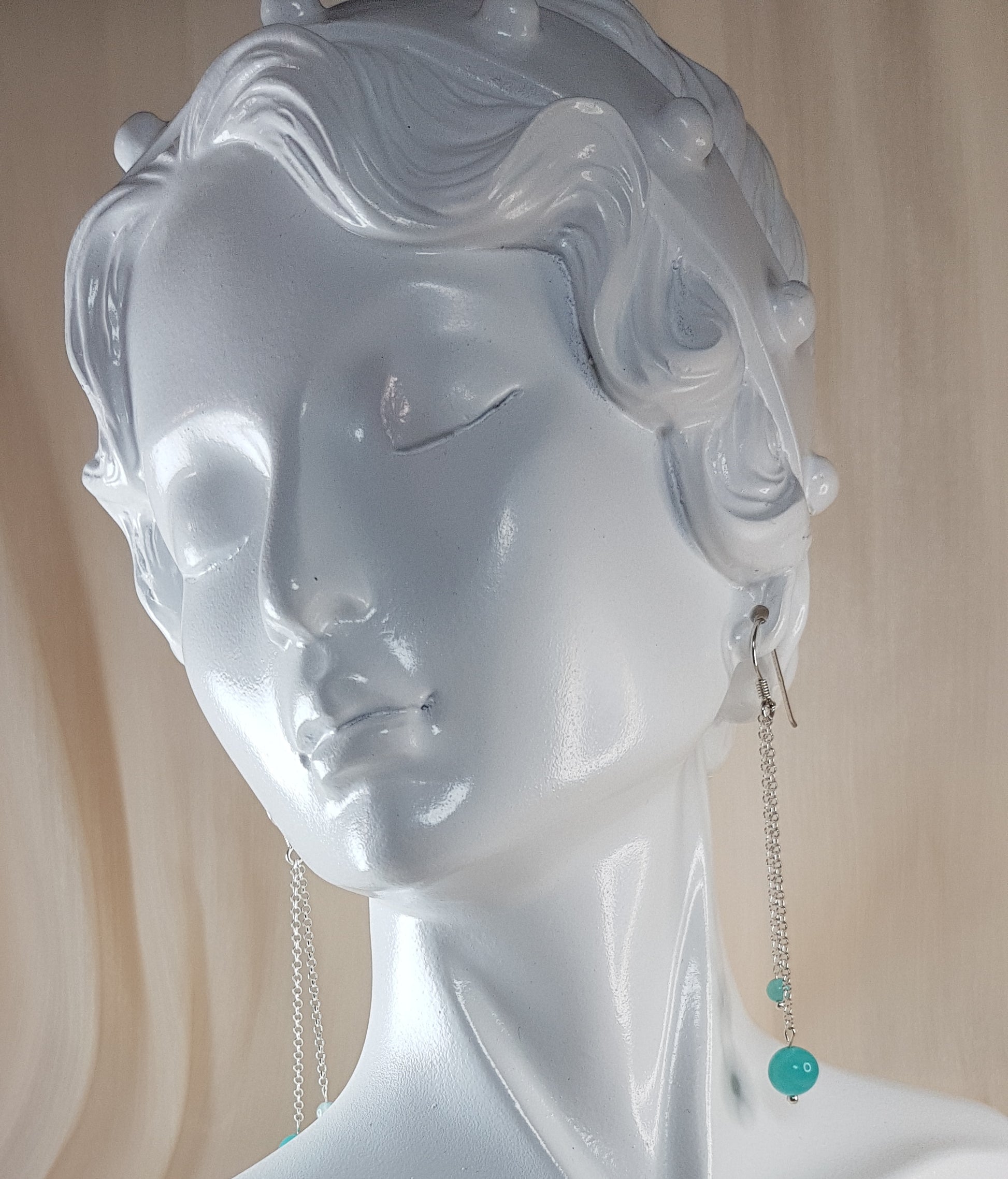 Boucles d'oreilles amazonite argent 925 composées d'une perle amazonite 8mm, 1 perle de amazonite 4 mm, 2 crochets oreilles argent 925, 2 perles argent 925