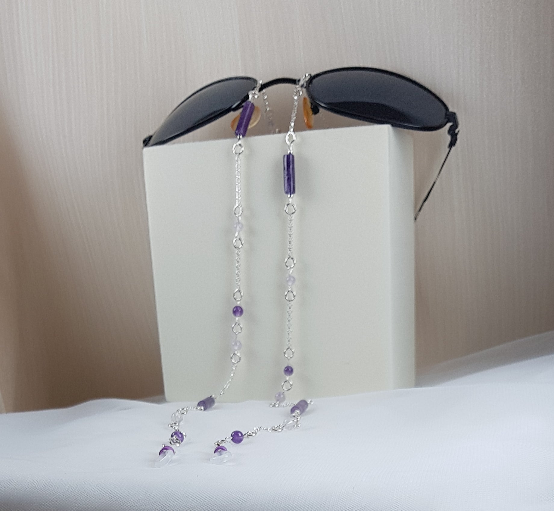 Osez l'originalité collier de lunettes 65 cm pierres naturelles + argent 925
