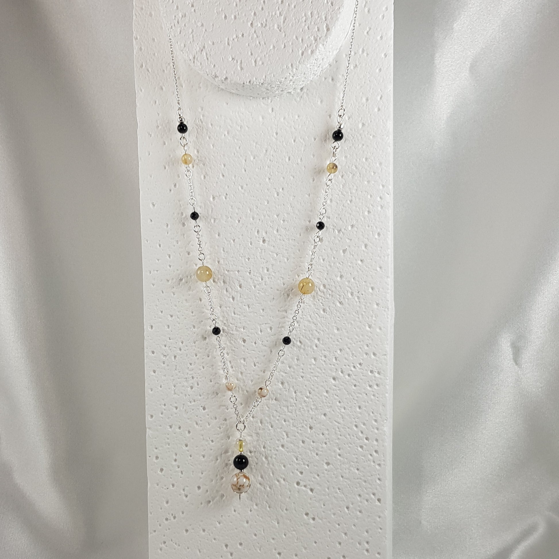 composé de quartz rutile, howlite, onyx + perles argent 925 + chaine argent 925
