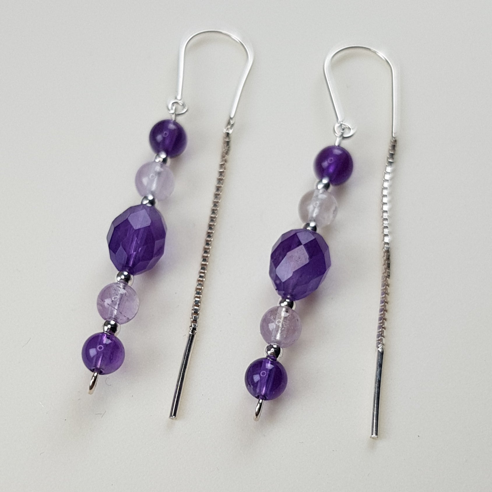 Boucles oreilles avec chaine composée de perles améthyste + perles argent 925