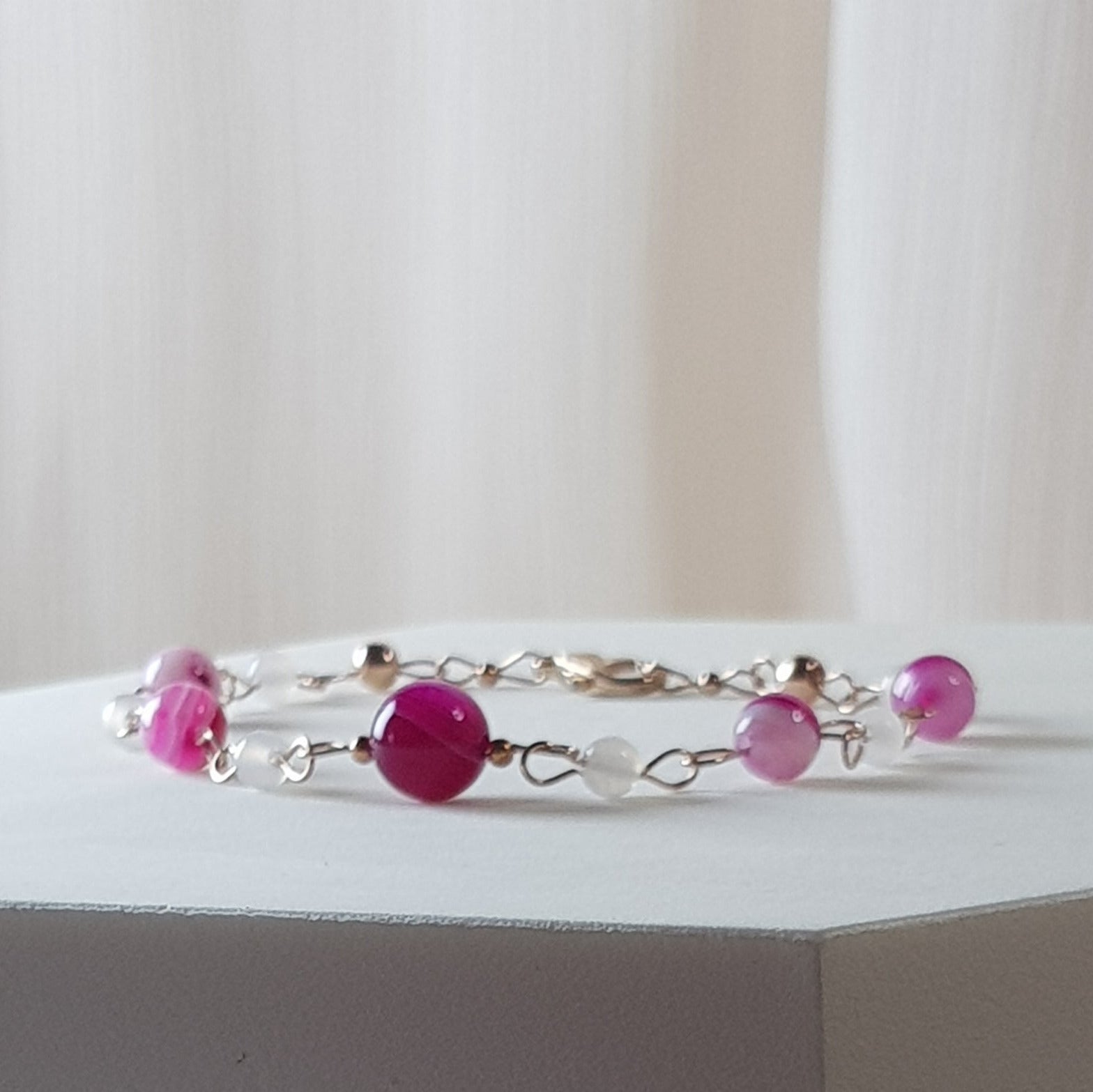 Agate fushia argent 925 plaque or rose