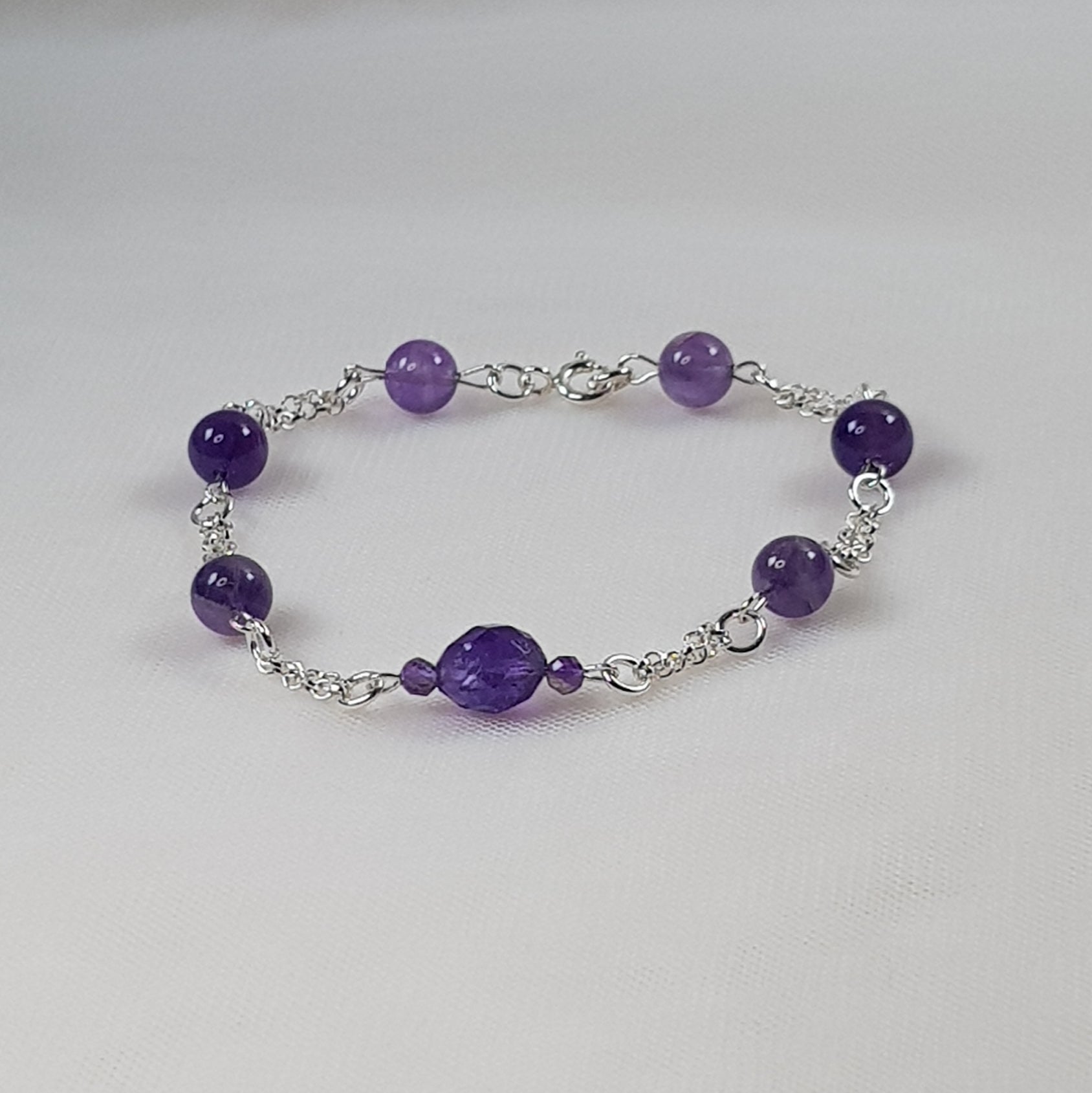 compose de pierres améthyste + perles argent 925  +chainette argent 925