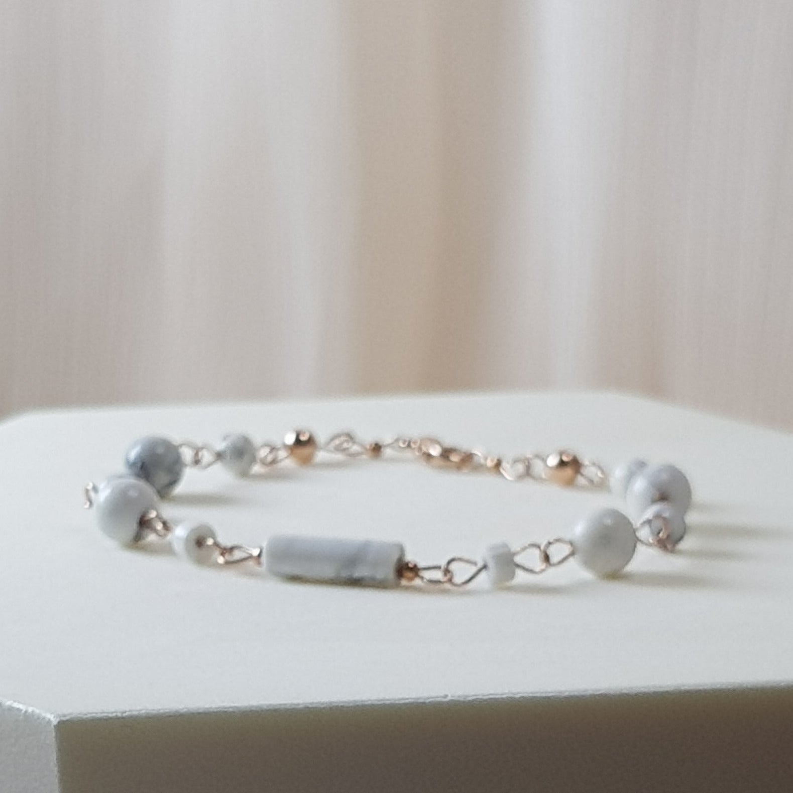 composé de pierres howlite + perles argent 925 plaque or rose