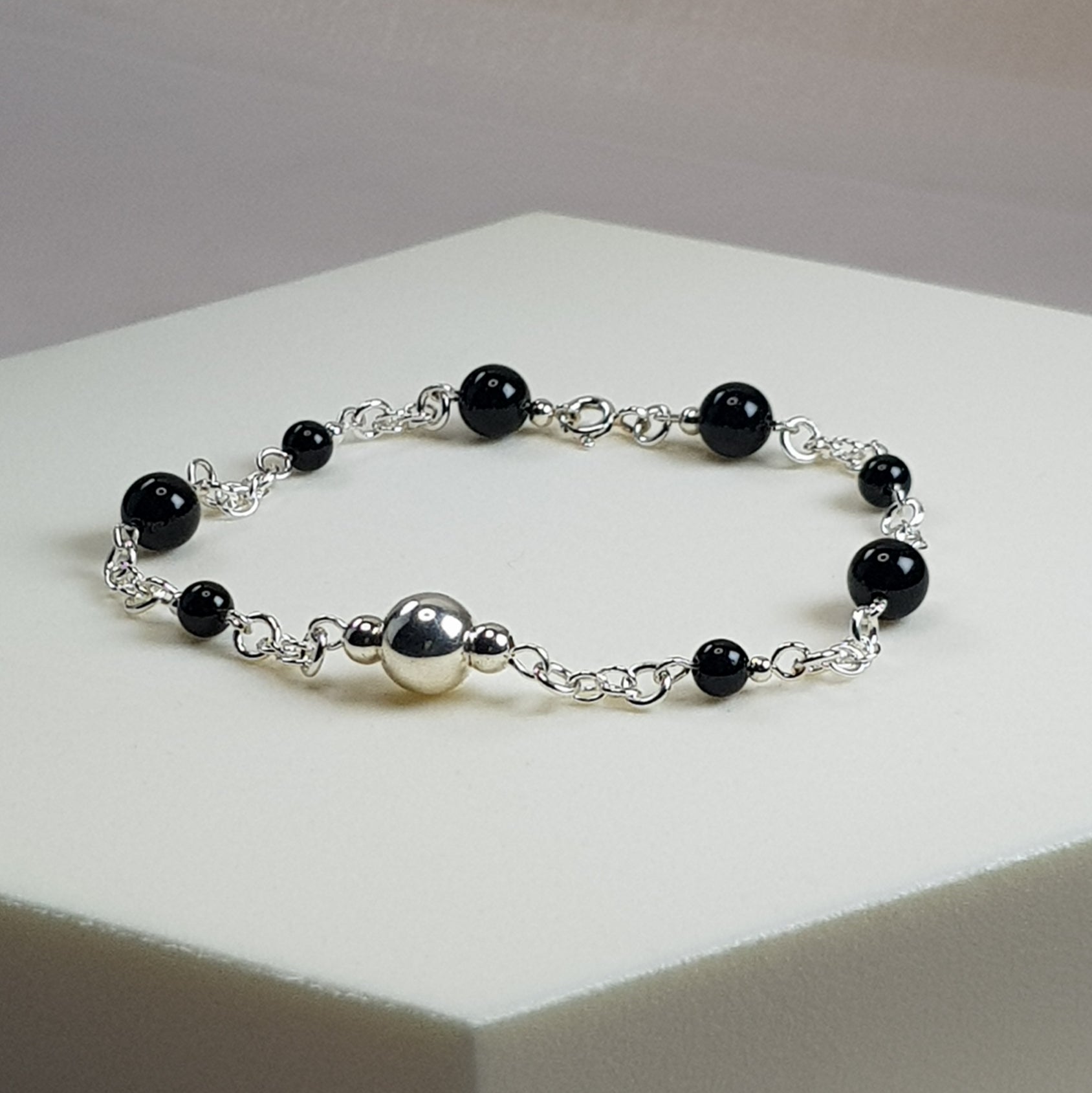 Bracelet tourmaline noire + argent 925 + chainette argent 925