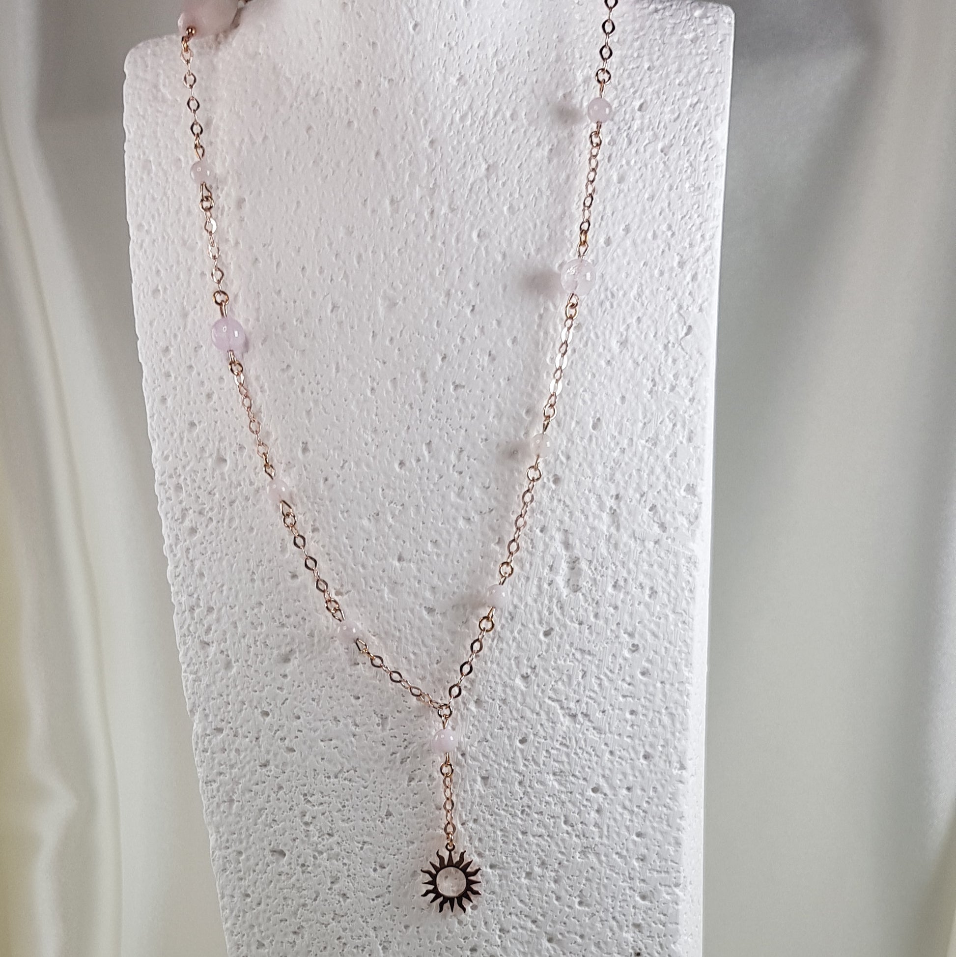 kunzite + perles argent 925 rose + chaine argent 925 rose