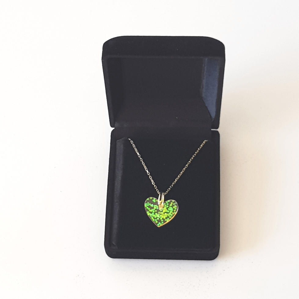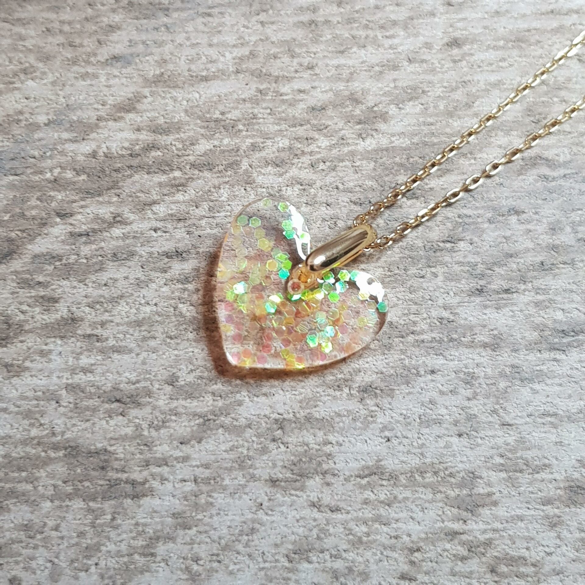 - Matériaux : résine, pigments, chaine en acier inoxydable doré appelé aussi acier chirurgical
