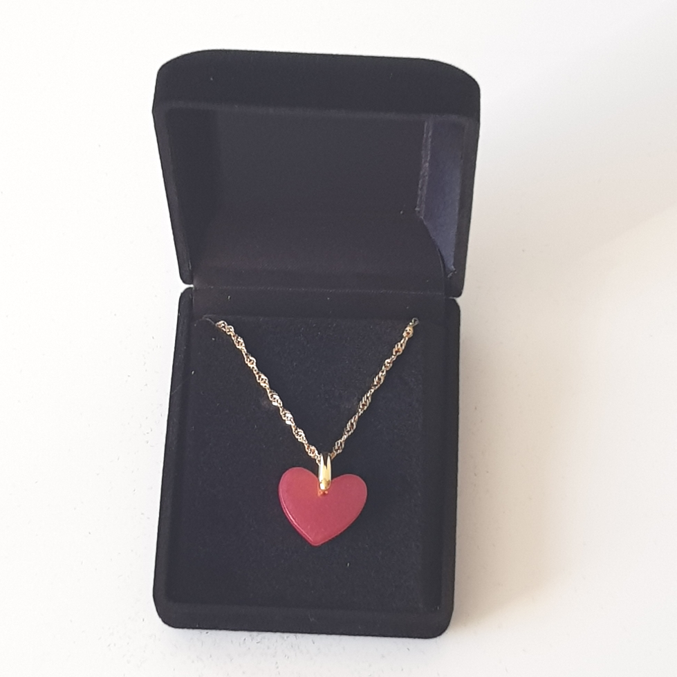 - Matériaux : résine, pigments, chaine en acier inoxydable doré appelé aussi acier chirurgical
