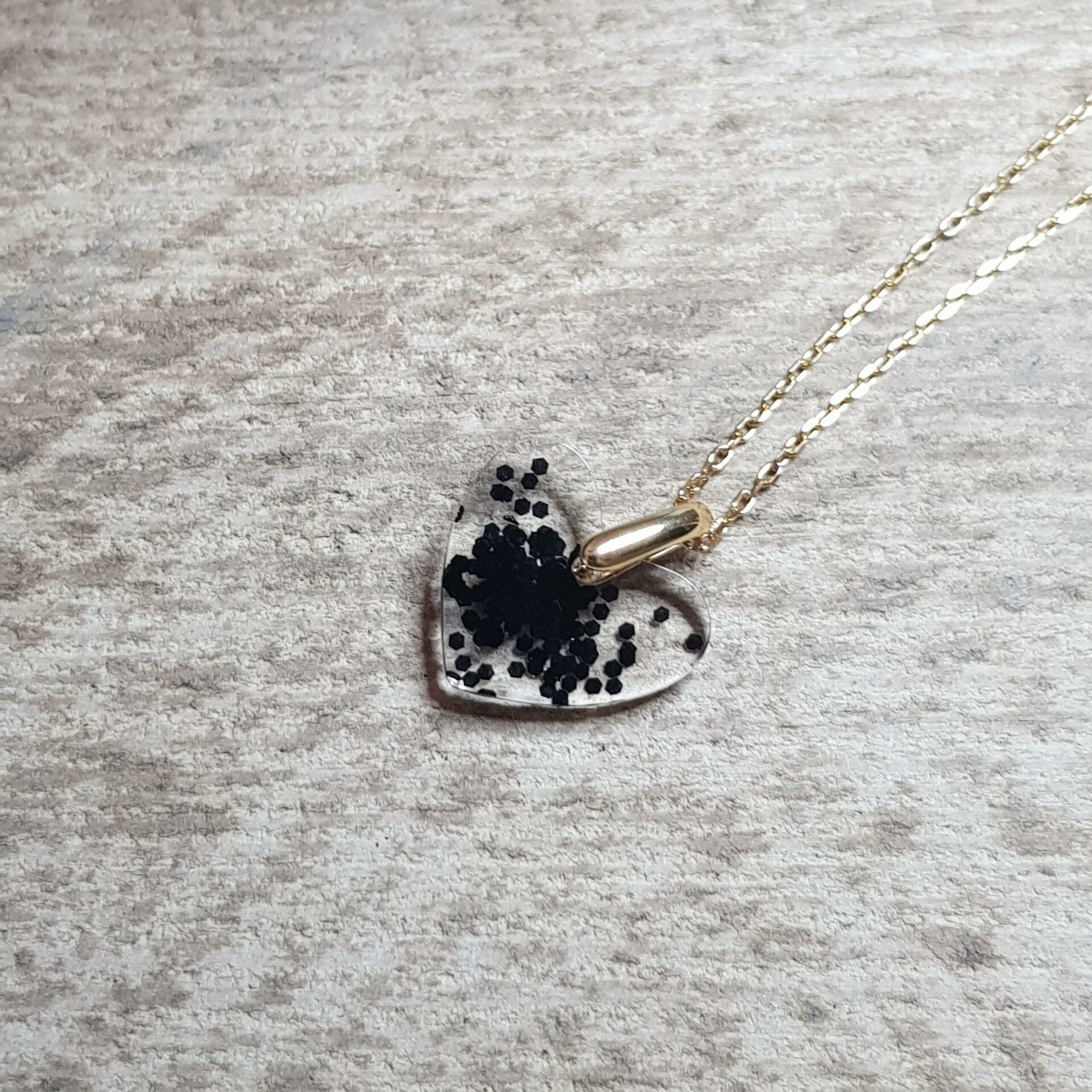 - Matériaux : résine, pigments, chaine en acier inoxydable doré appelé aussi acier chirurgical