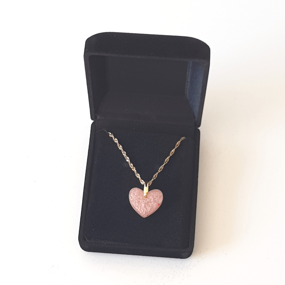 - Matériaux : résine, pigments, chaine en acier inoxydable doré appelé aussi acier chirurgical