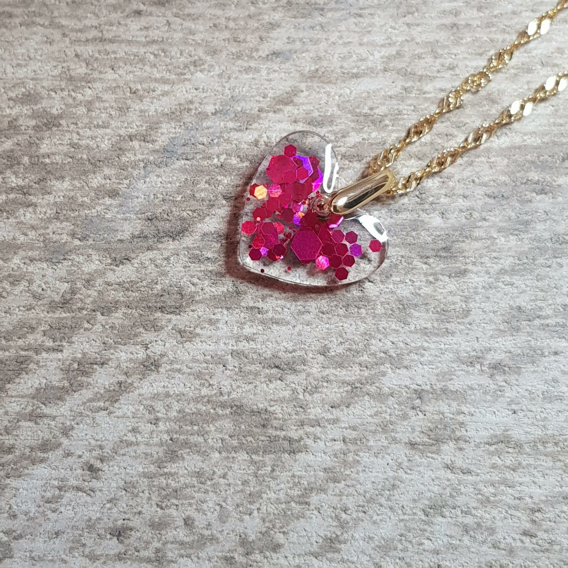 Collier pendentif coeur en résine élégant.