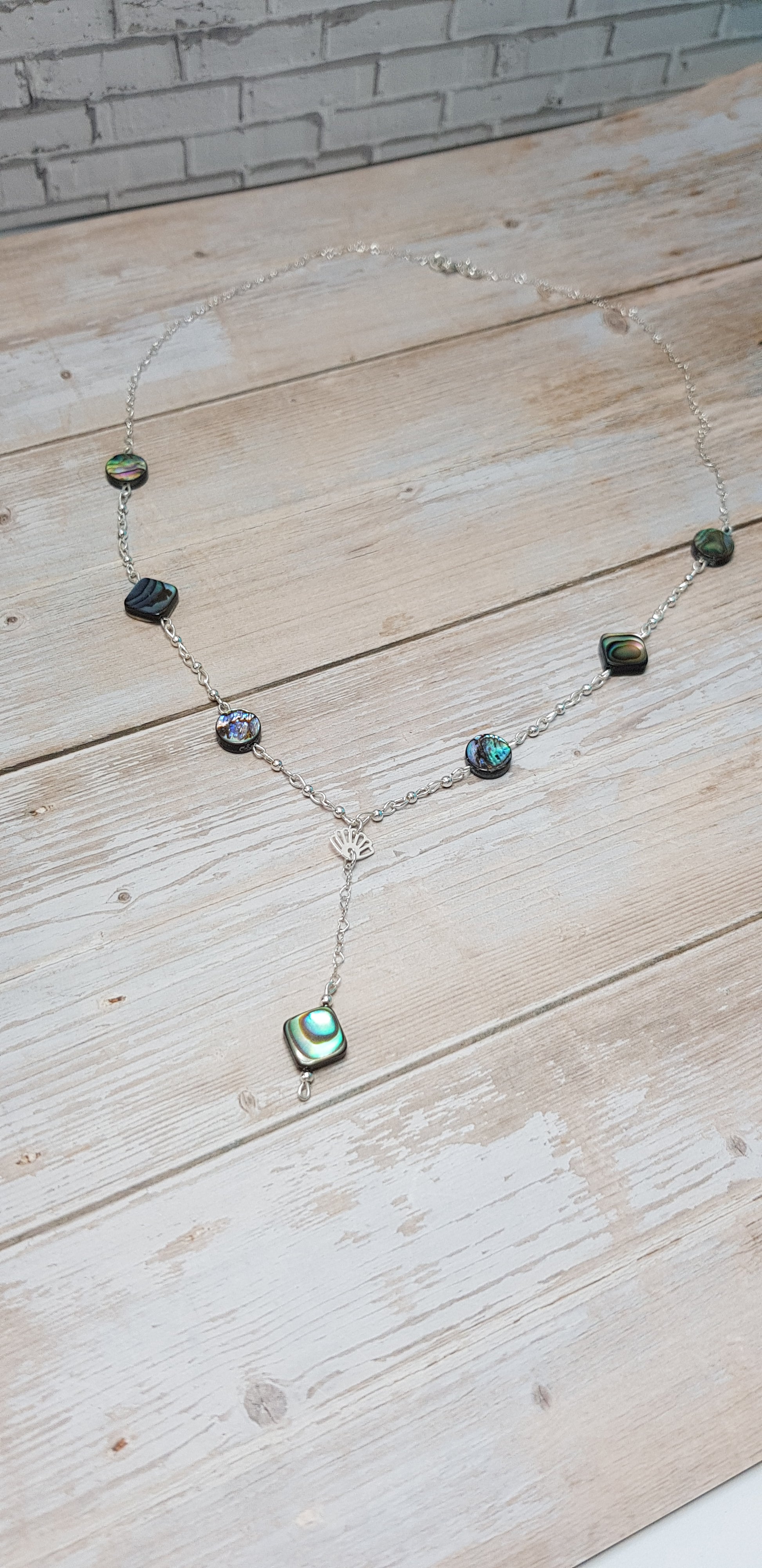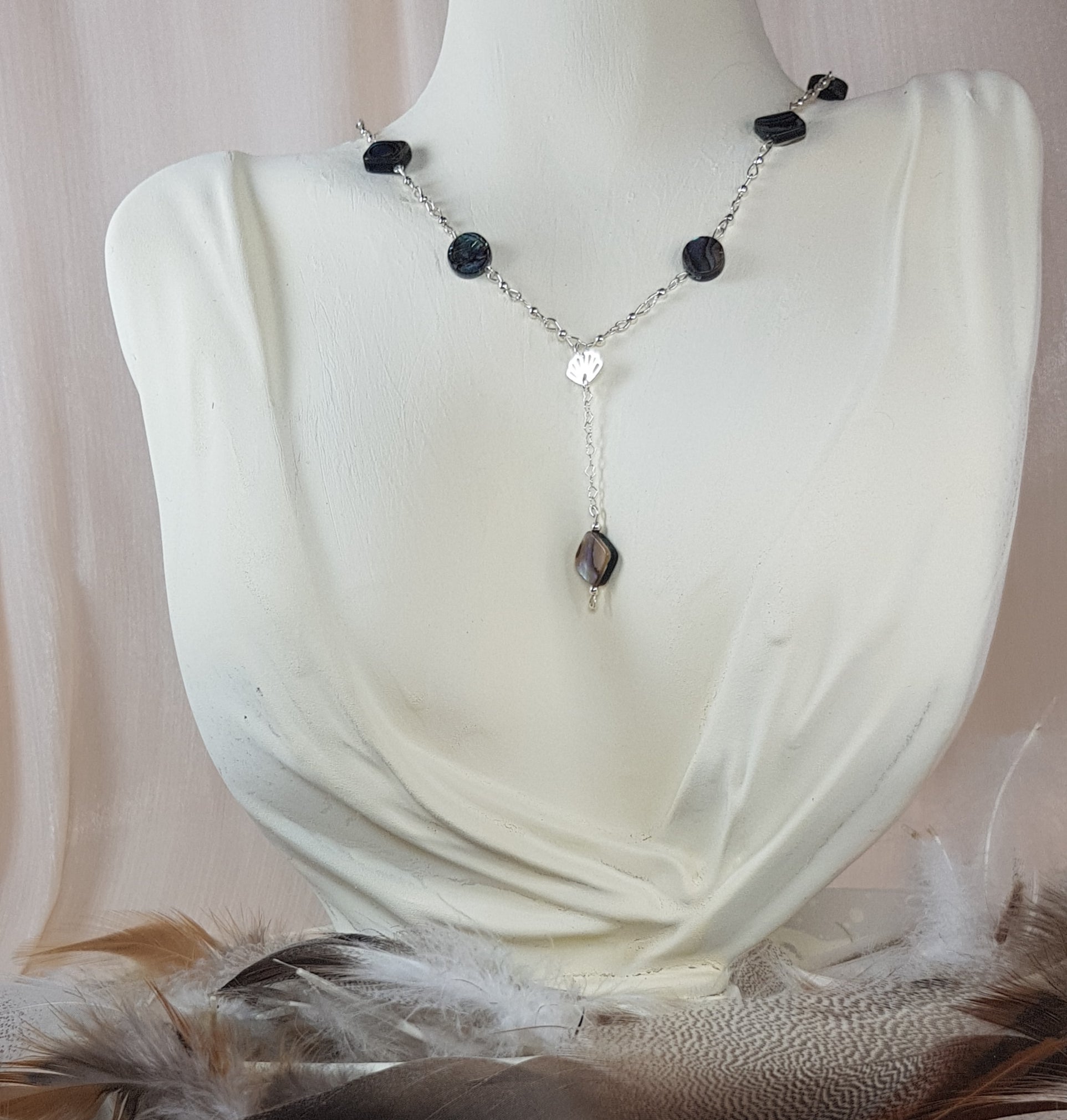 pierres coquille d'ormeau + chaine argent 925, perles argent 925, tour de cou 45 cm