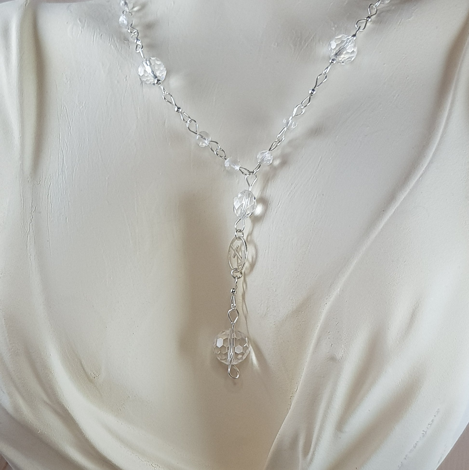 Pendentif composé de pierres cristal de roche + signe sagittaire argent 925 + perles argent 925 + chaine argent 925 de 45 cm