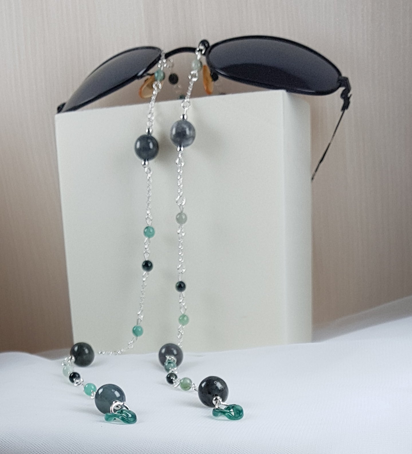Osez l'originalité collier de lunettes 65 cm pierres naturelles + argent 925