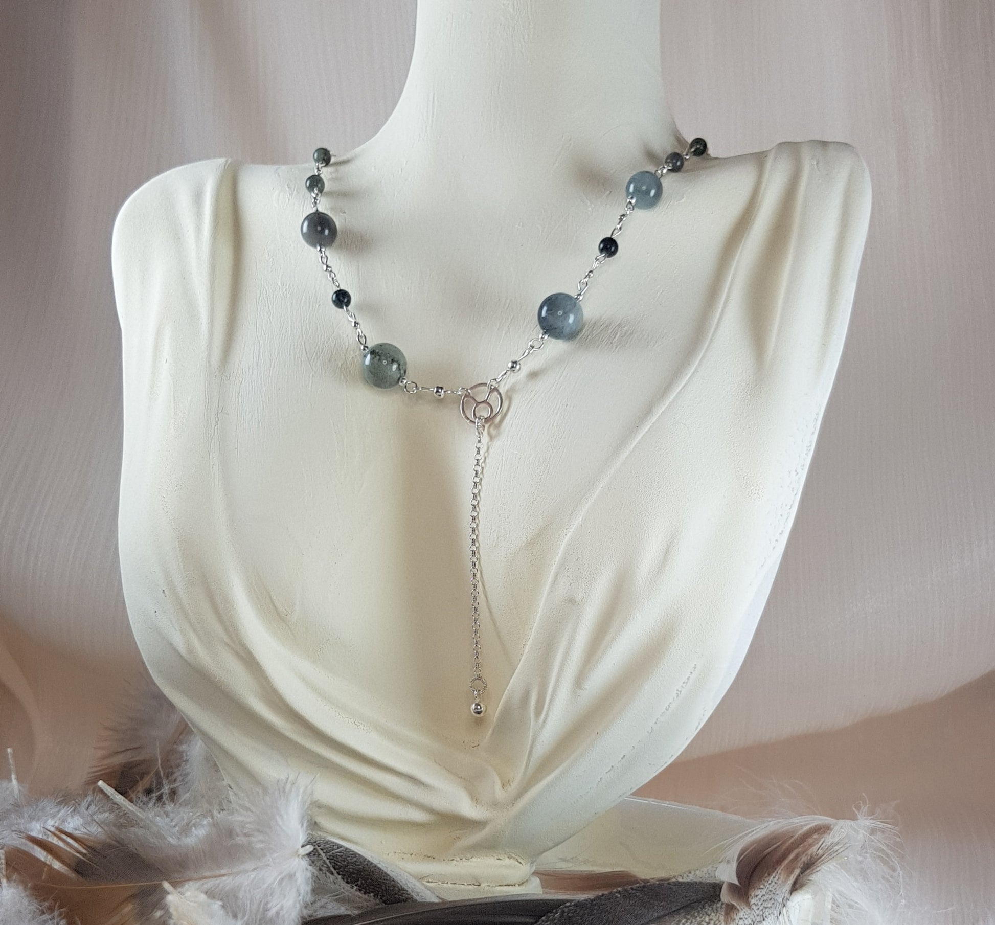Pendentif composé de pierres émeraude + signe taureau argent 925 + perles argent 925 + chaine argent 925 de 45 cm