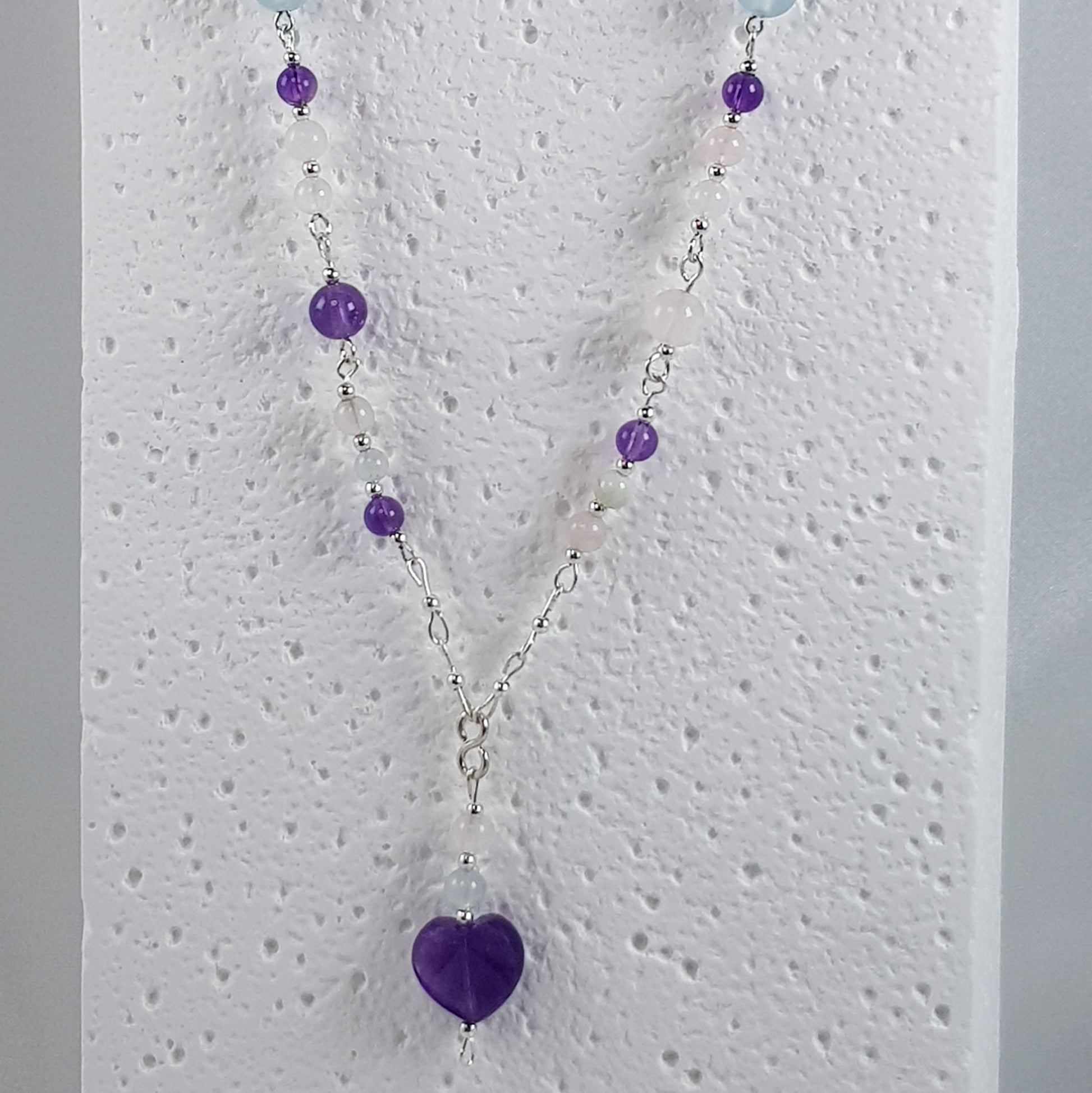 composé de quartz rose, aigue marine, améthyste + perles argent 925 + chaine argent 925