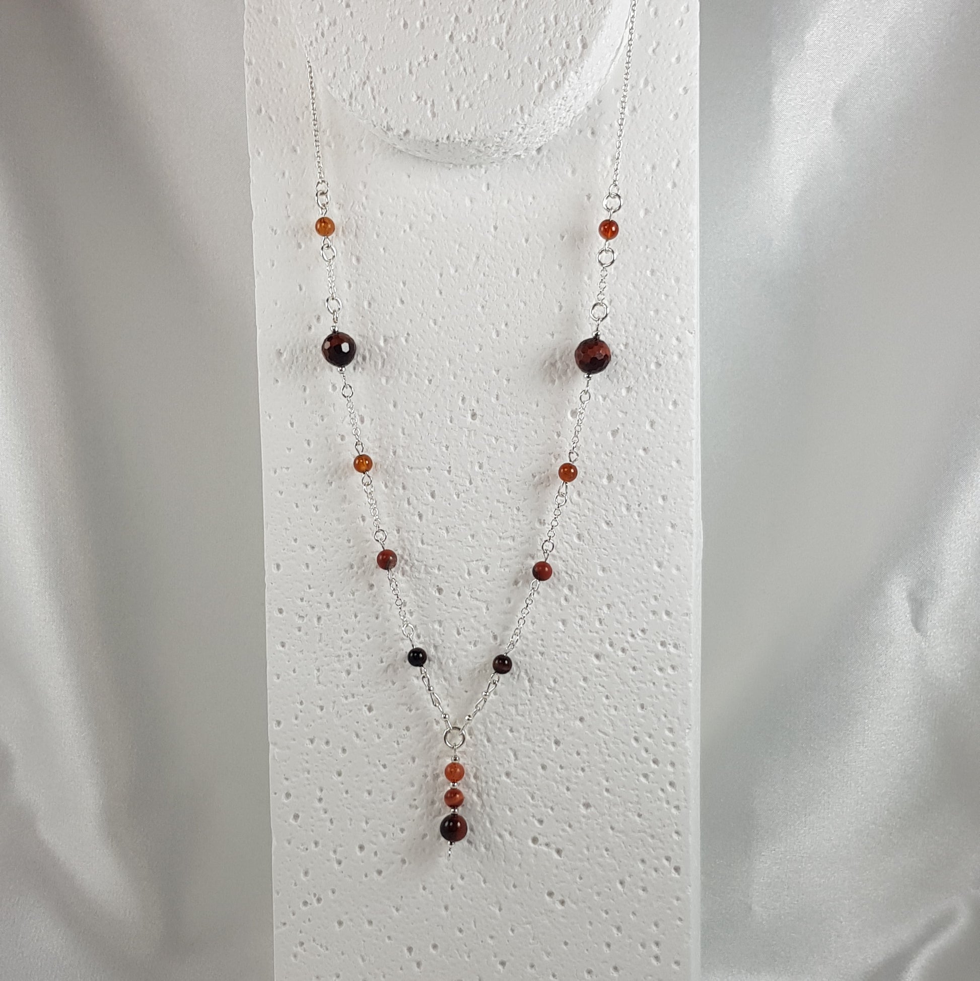 composé de pierres jaspe rouge, grenat orange, oeil de taureau + perles argent 925 + chaine argent 925