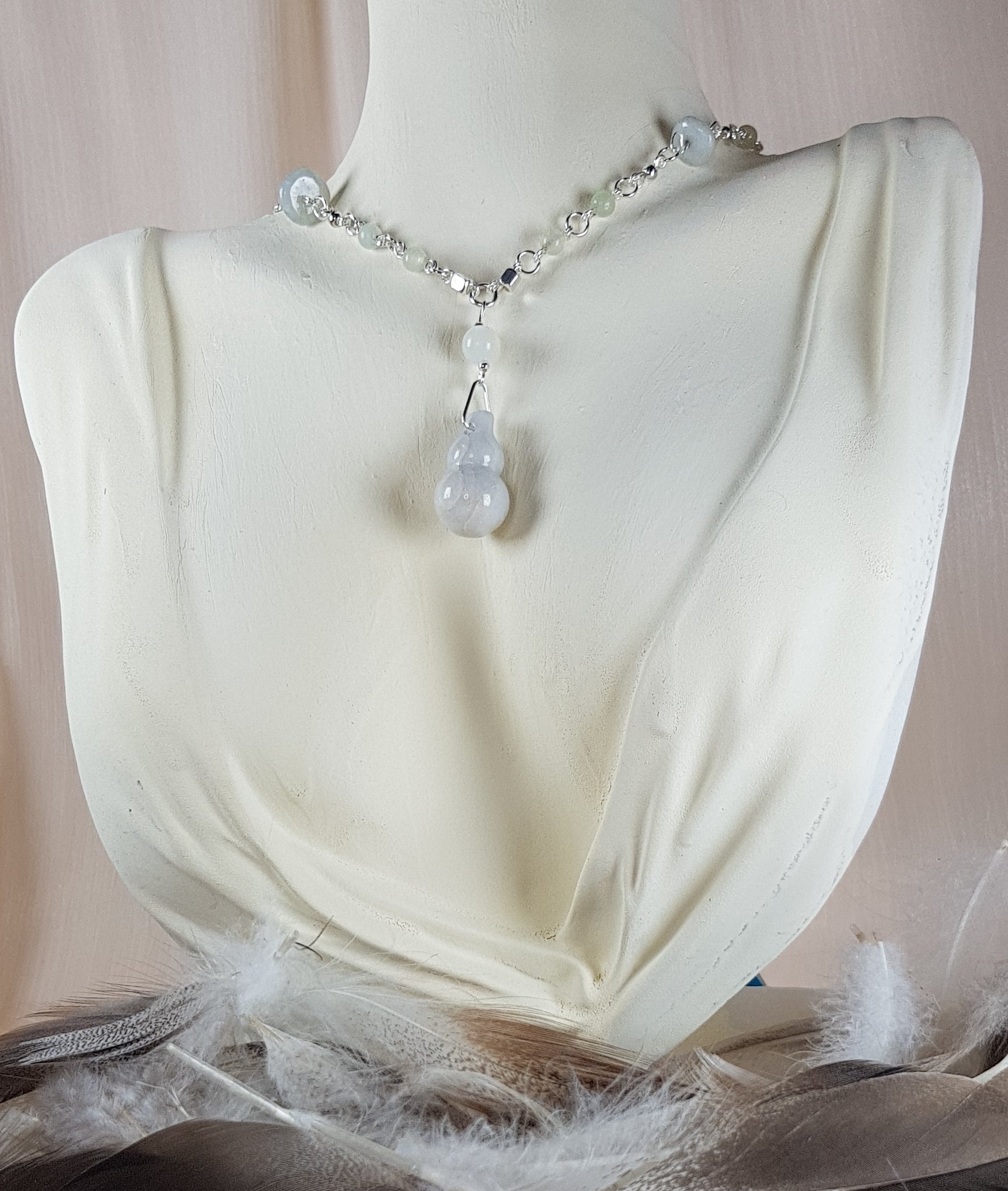 comprenant 1 pierre jade de chine + pierres jade de chine + perles argent 925+ chaine argent 925