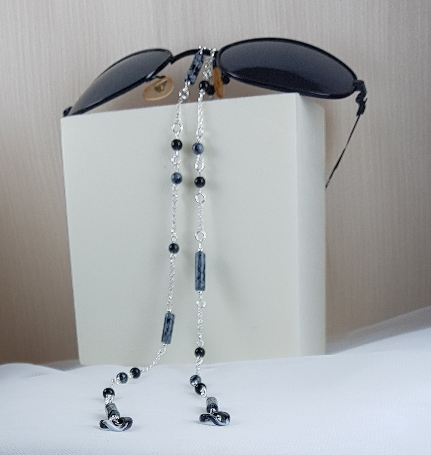 Osez l'originalité collier de lunettes 65 cm pierres naturelles + argent 925
