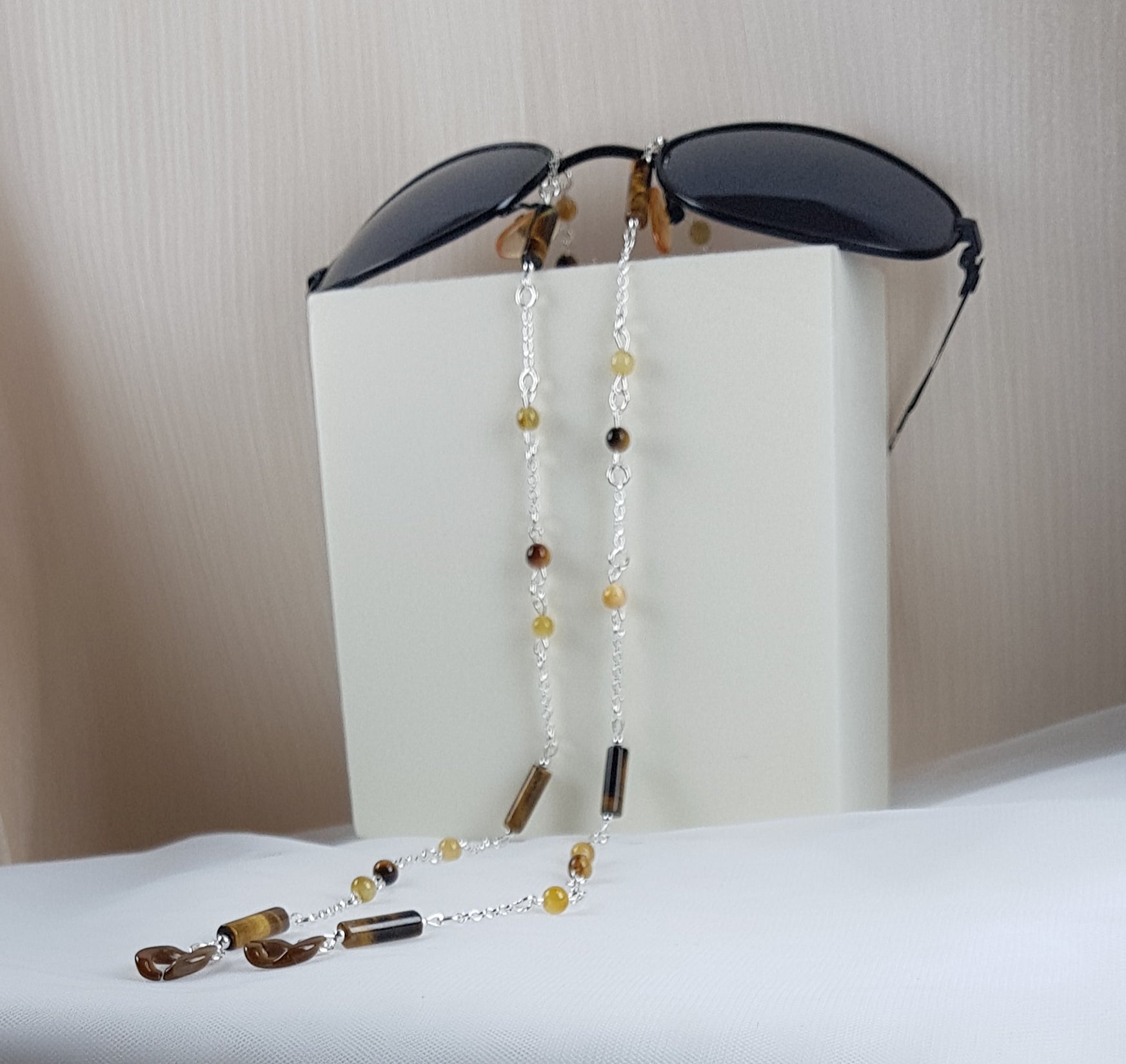 Osez l'originalité collier de lunettes 65 cm pierres naturelles + argent 925