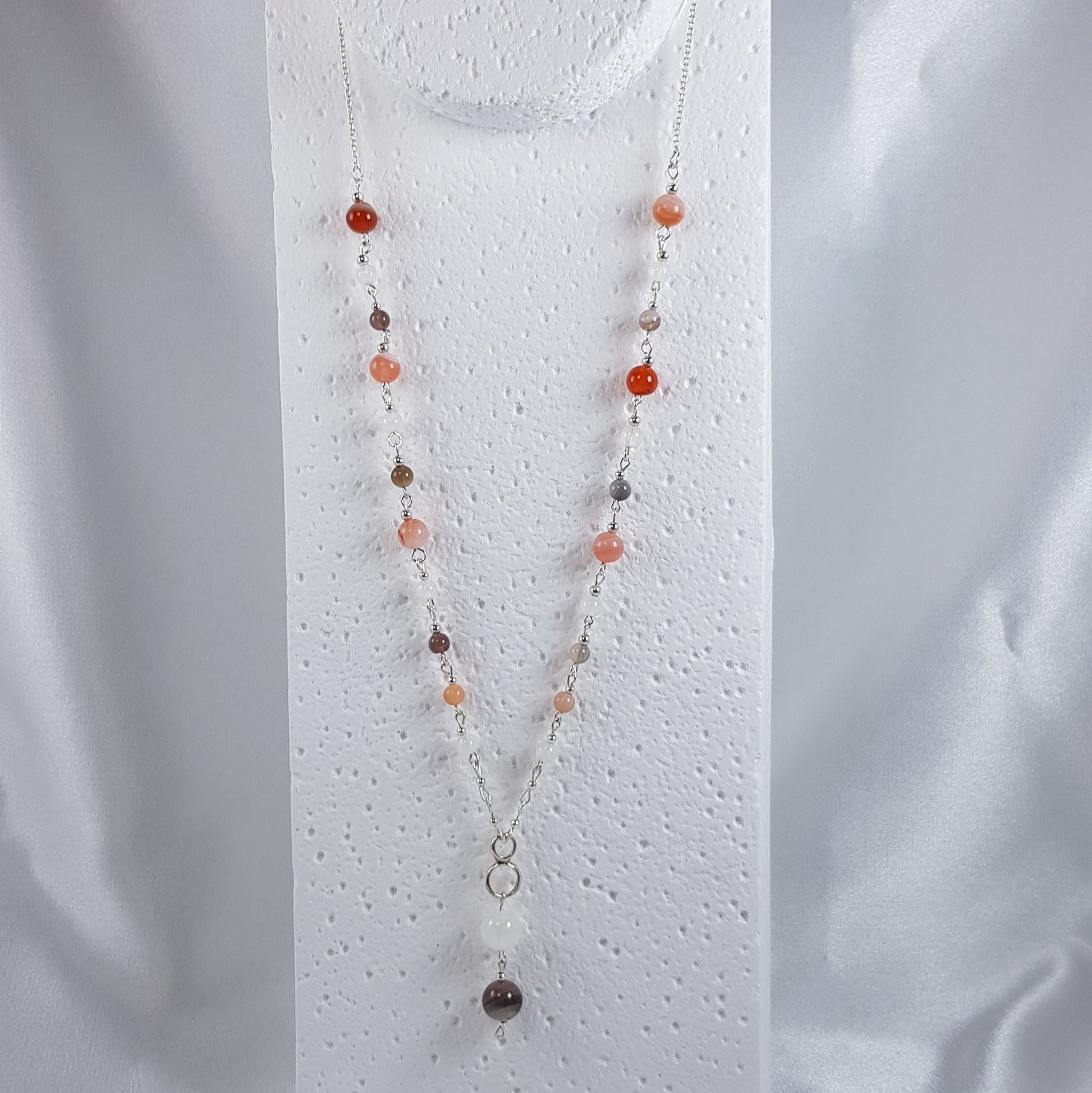 composé de pierres agate botswana grise et orange, sélénite + perles argent 925 + chaine argent 925