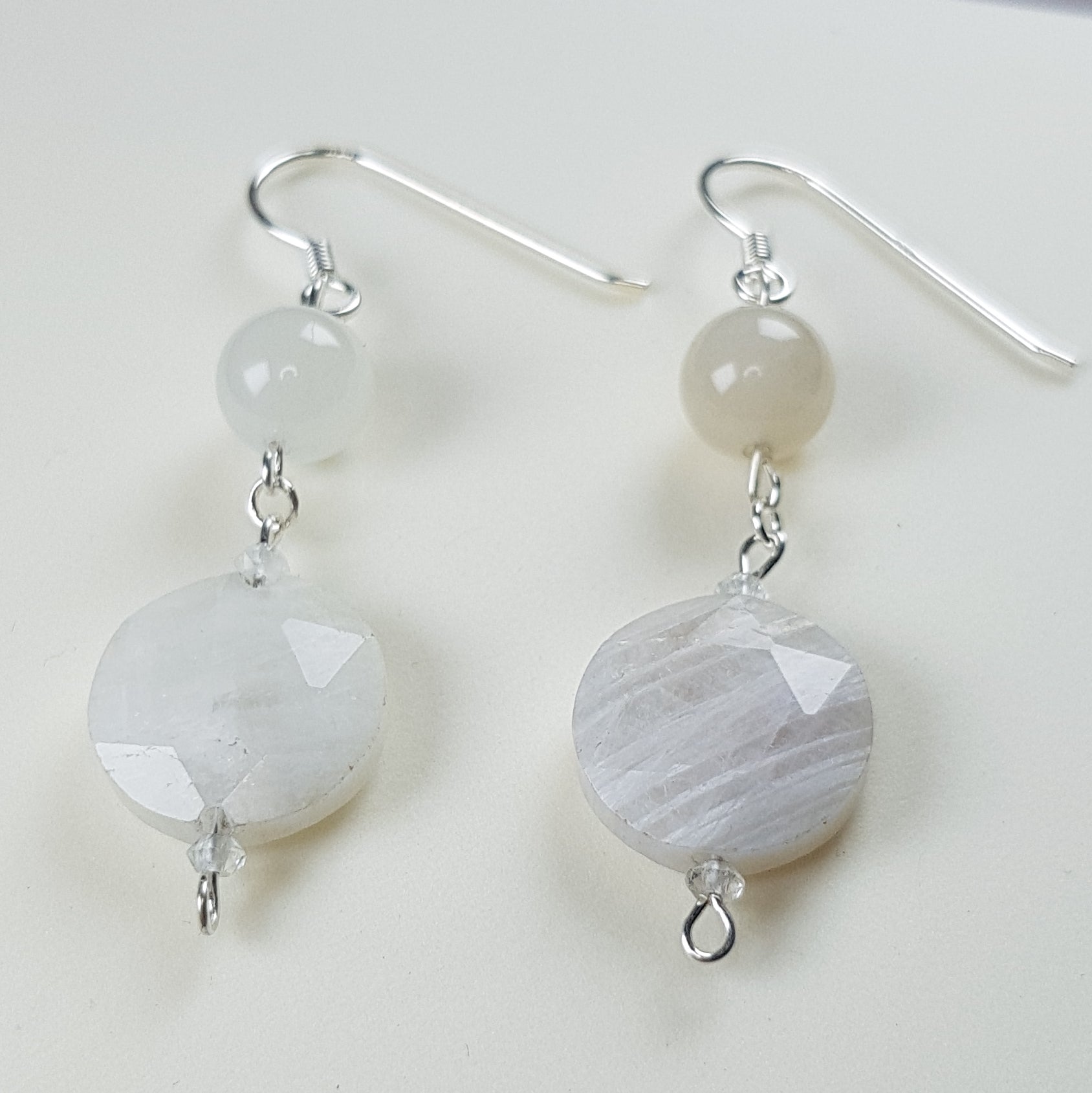 Boucles d'oreilles pierre de lune blanche argent 925 composées de perles pierre de lune, 2 crochets oreilles argent 925,