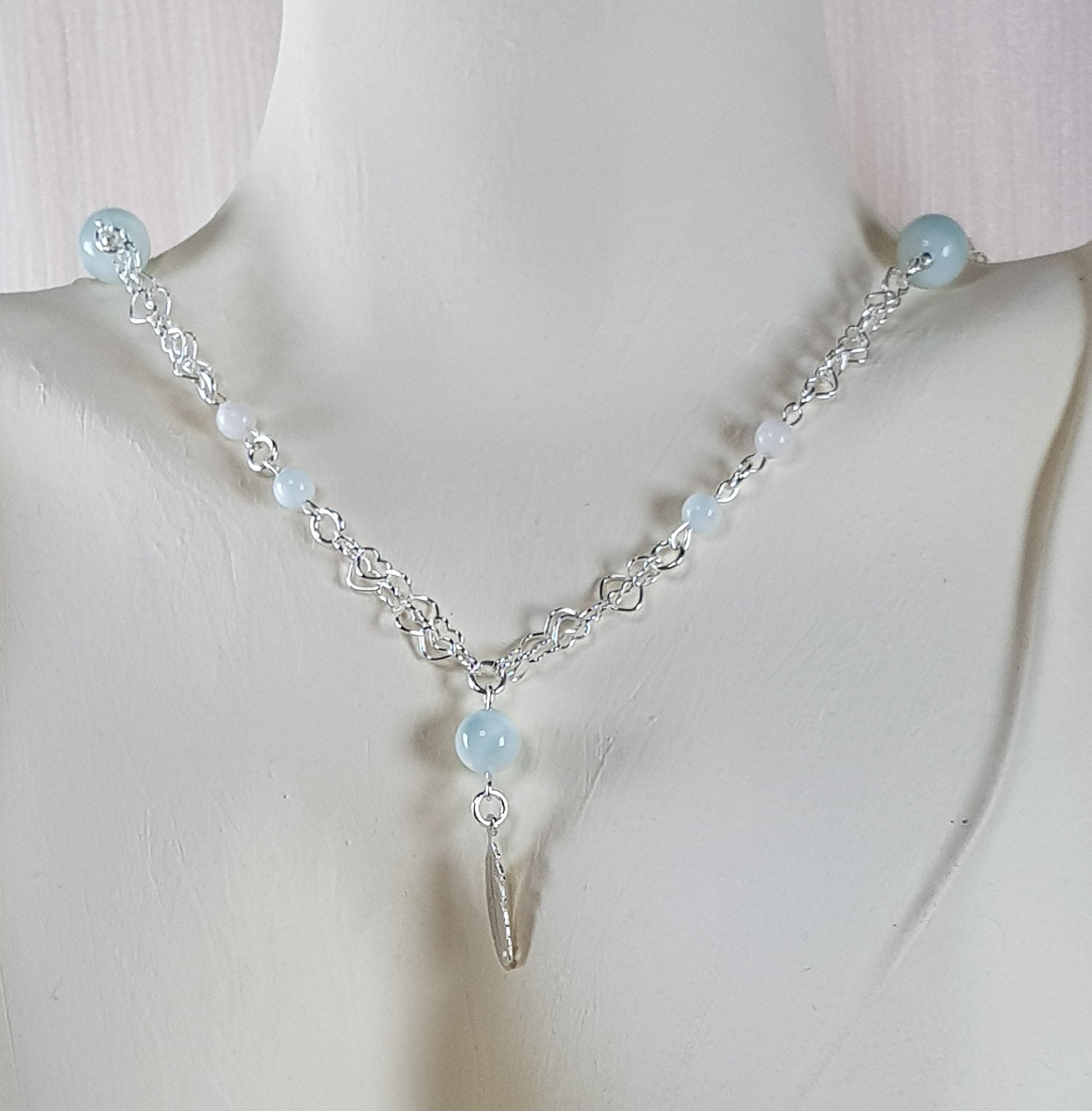 pierre de lune verte + chaine argent + bijou plume argent 925