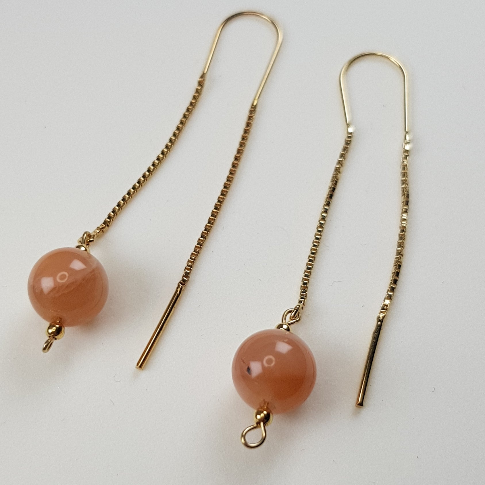 Boucles d'oreilles pierre de soleil argent 925 plaque or 1 micron composées d'une perle pierre de soleil 8 mm, 2 crochets oreilles argent 925 plaque or 1 micron, 2 perles argent 925 plaque or 1 micron,