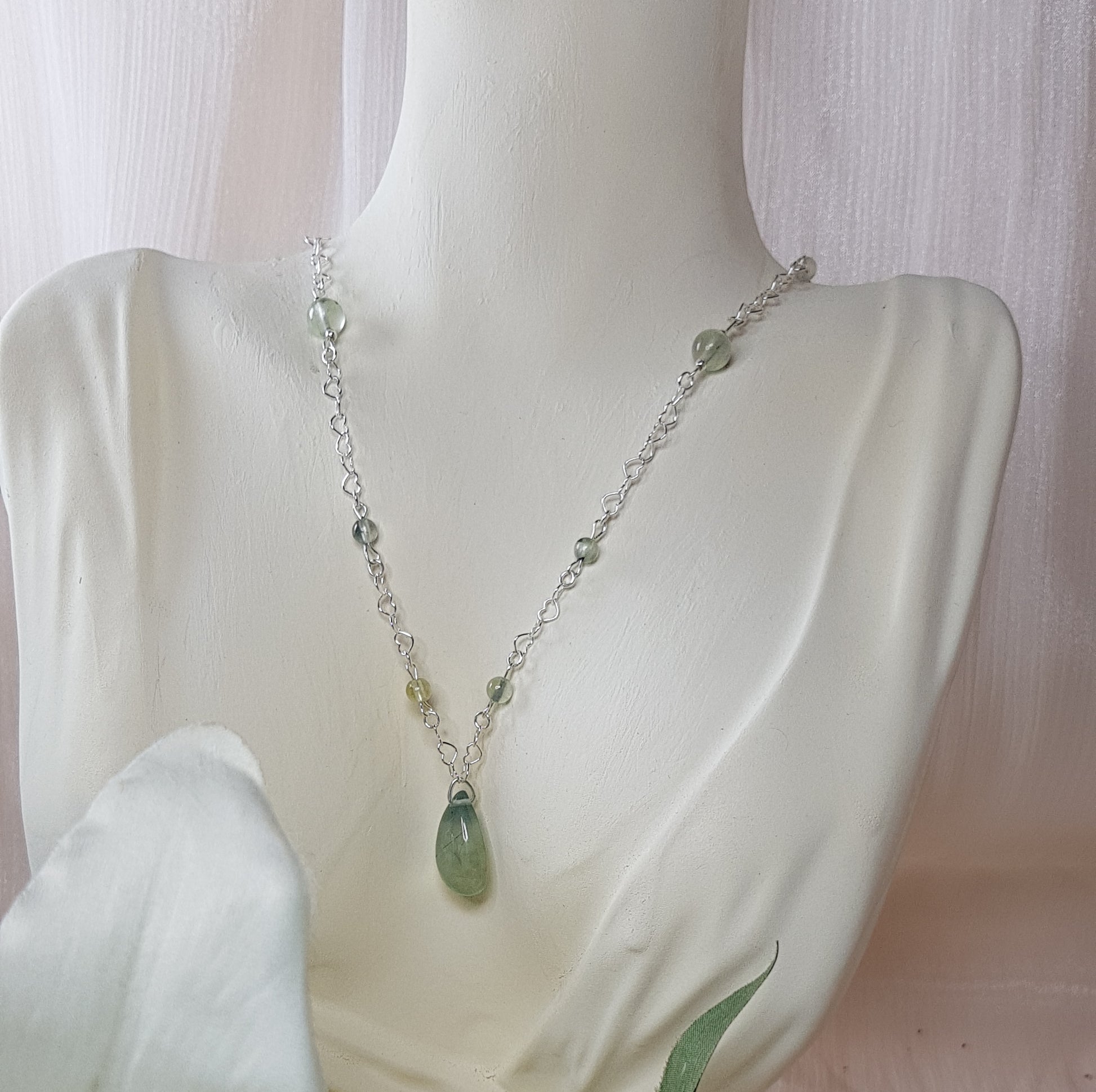 pierres prehnite + chaine argent 925