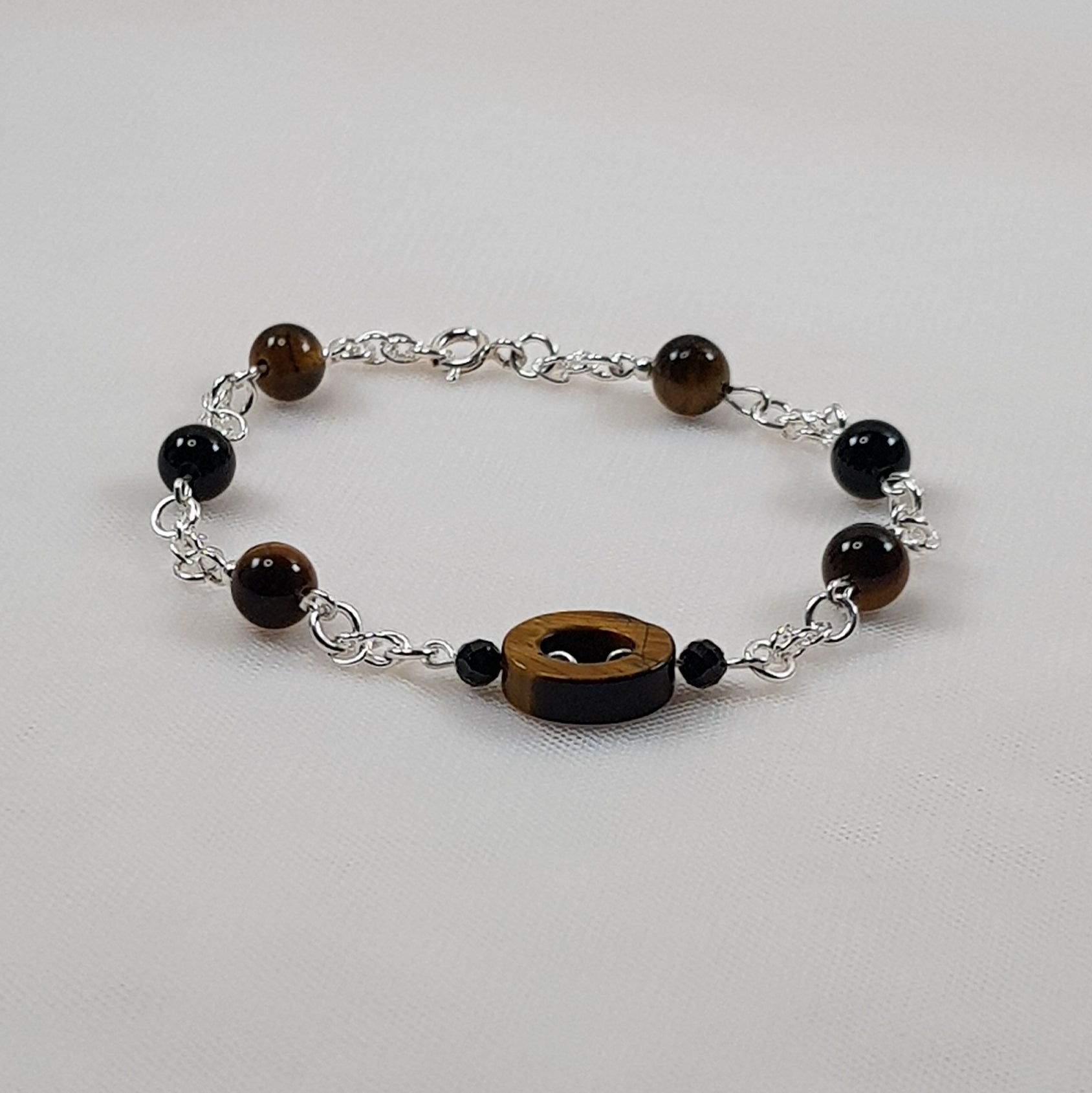 Lorsque ces deux pierres sont associées, elles forment un cocon de sécurité. L'Onyx offre une fondation stable, tandis que l'Œil de tigre veille, tel un guerrier vigilant, prêt à défendre et à guider. Le porteur de ce bracelet bénéficie non seulement d'une protection renforcée contre les influences extérieures, mais aussi d'un soutien constant pour renforcer sa confiance intérieure, son audace et son équilibre émotionnel.