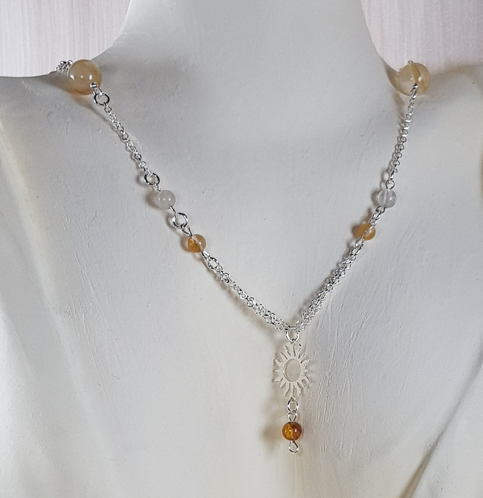 quartz hématoide jaune + soleil argent 925 + perles argent 925 + chaine argent 925