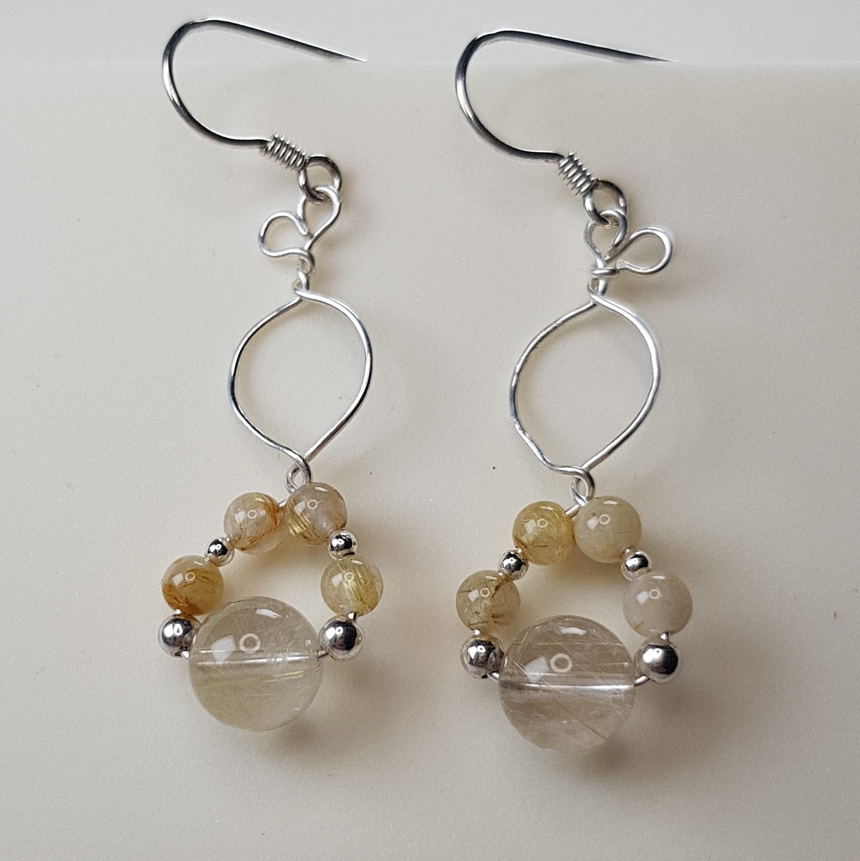 Boucles d'oreilles quartz rutile argent 925 composées de perles rutile , 2 crochets oreilles argent 925, de perles argent 925,