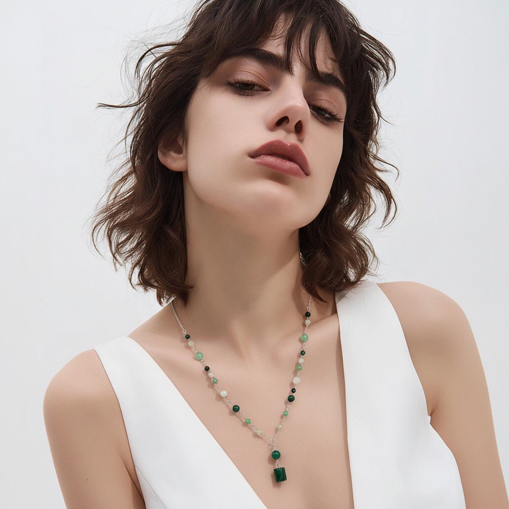 composé de pierres aventurine, jade, malachite + perles argent 925 + chaine argent 925