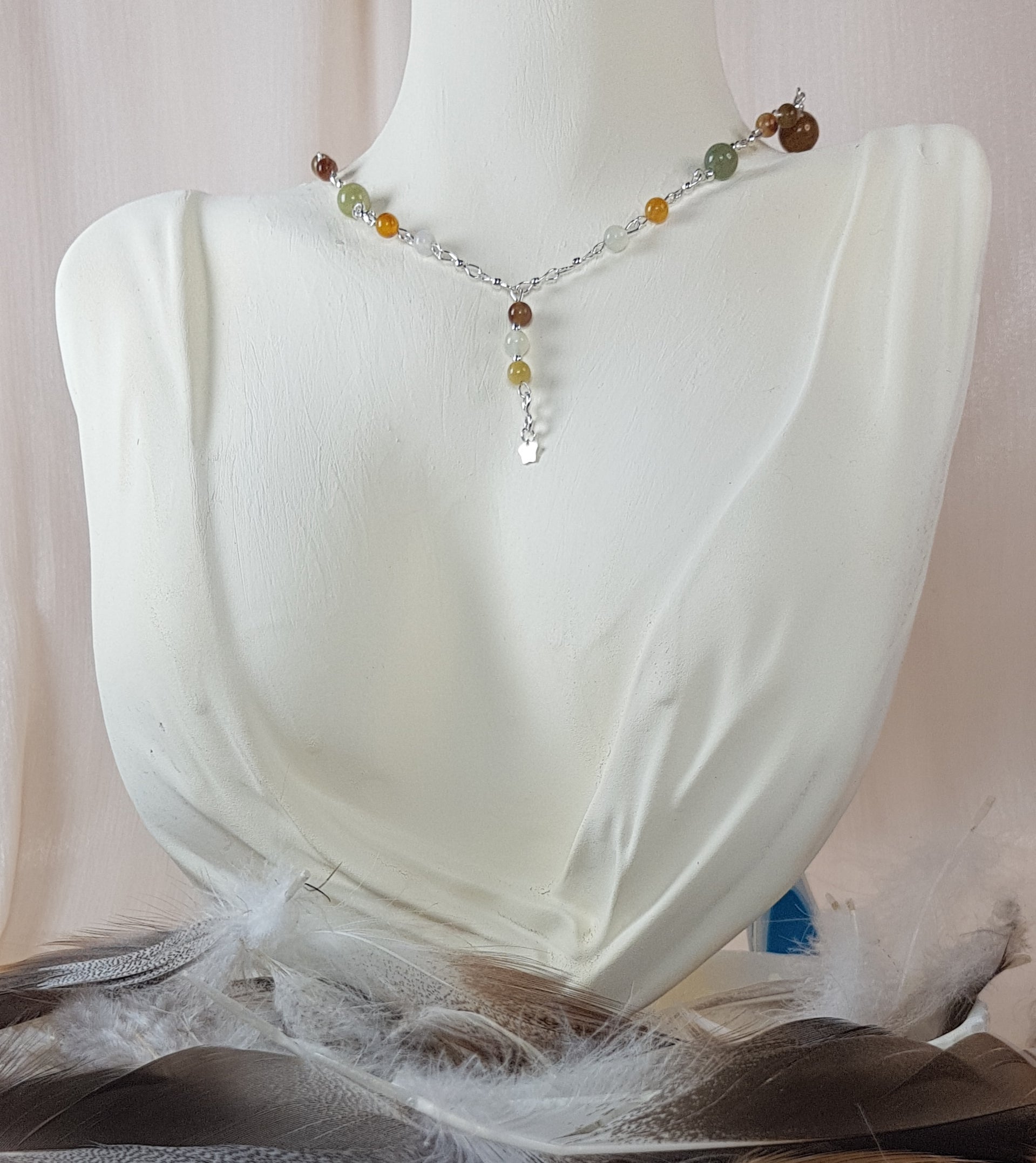 Serpentine + etoile argent 925 + perles argent 925 + chaine argent 925