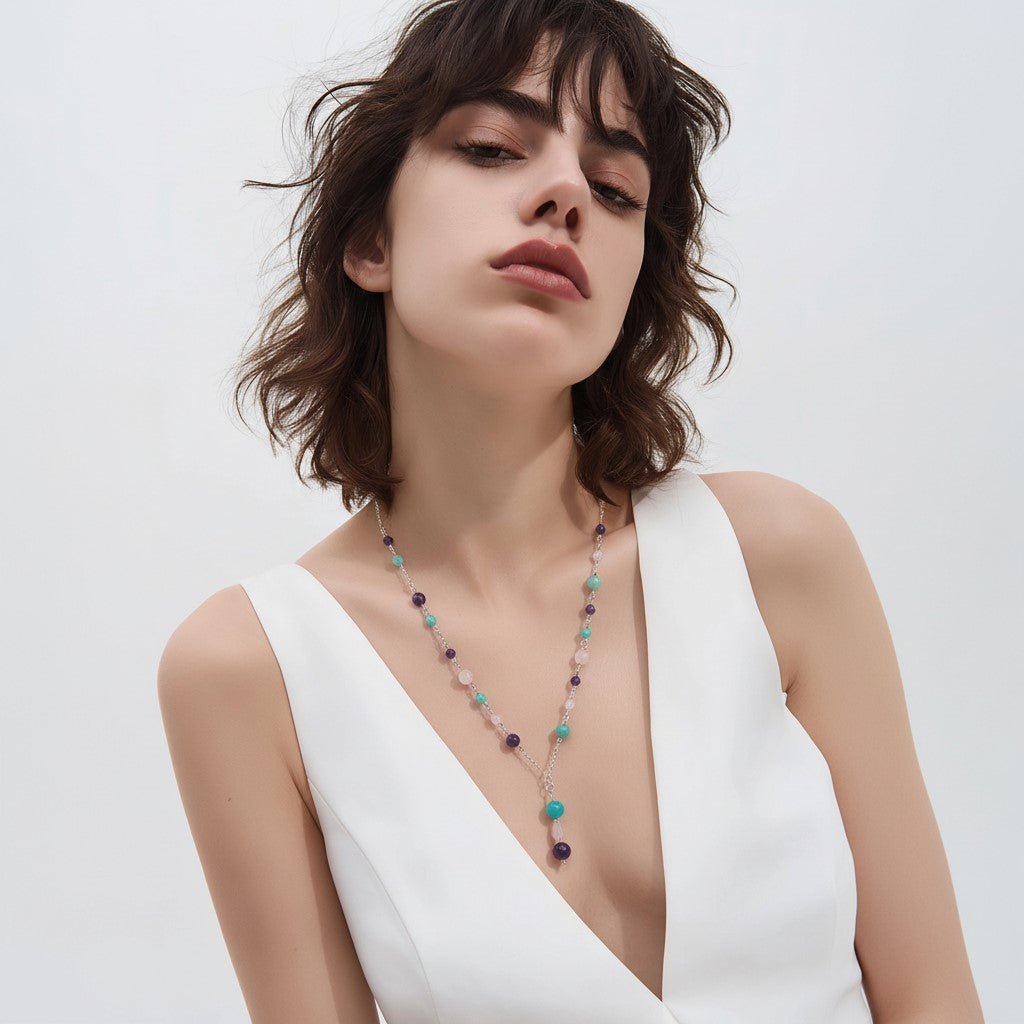 Ce pendentif est conçu pour vous accompagner dans la célébration de la vie, du plaisir et de la sensualité. Les pierres naturelles qui le composent éveillent vos sens et favorisent l'épanouissement personnel.